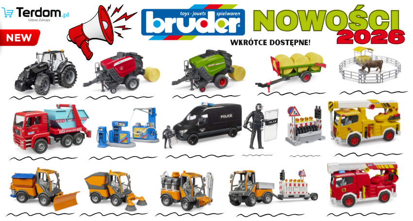 Codziennie wprowadzamy nowości marki Bruder do naszego sklepu internetowego, aby zapewnić Ci najświeższe i najbardziej atrakcyjne produkty. Niezależnie od tego, czy jesteś kolekcjonerem, czy po prostu chcesz zapewnić swojemu dziecku niezapomniane chwile zabawy, znajdziesz u nas idealną zabawkę Bruder.
